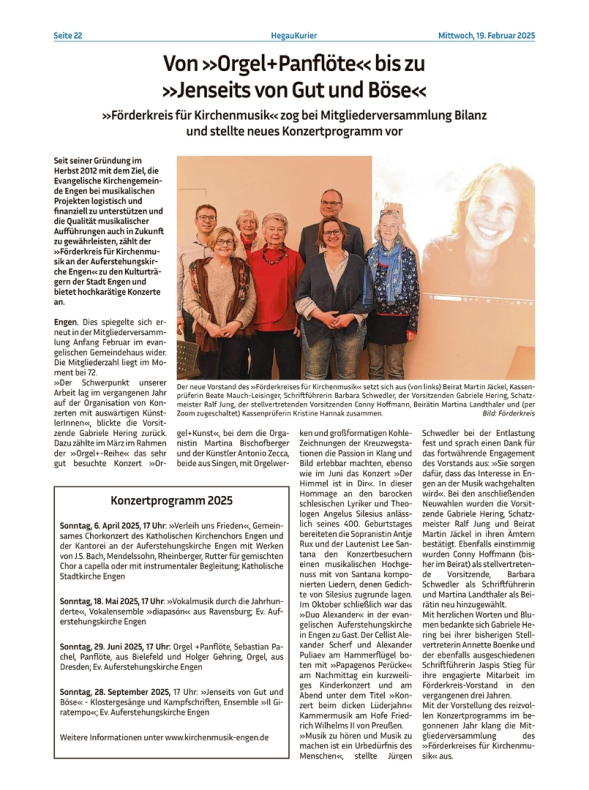 Presseartikel aus dem Hegaukurier zur Mitgliederversammlung 2025 mit Neuwahlen des Vorstandes